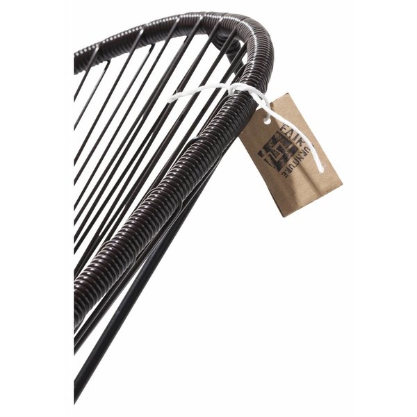 Nous n'utilisons que des matériaux de qualité. Cadre en acier enduit de poudre et le siège tissé à la main en PVC UV résistant recyclé. Le cadre est constitué d’une pièce unique qui nous différencie d’autres fabricants.