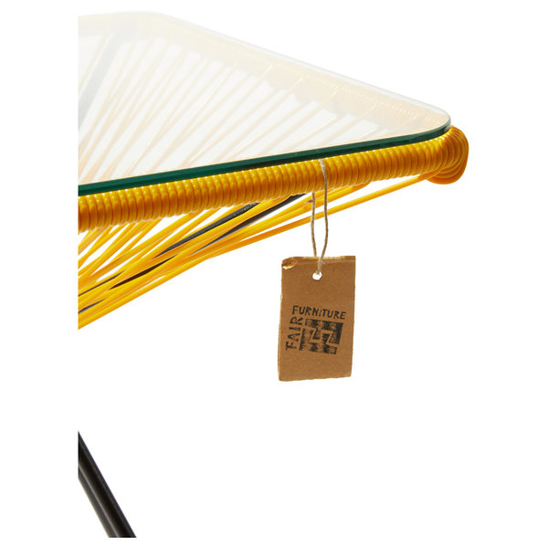 Fabriqué de manière éthique au Mexique, tissé à la main à partir de cordes en PVC sans phtalates et résistantes aux UV sur un cadre en acier galvanisé.