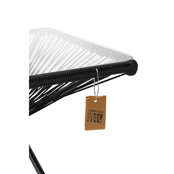 Fabriqué de manière éthique au Mexique, tissé à la main à partir de cordes en PVC sans phtalates et résistantes aux UV sur un cadre en acier galvanisé.