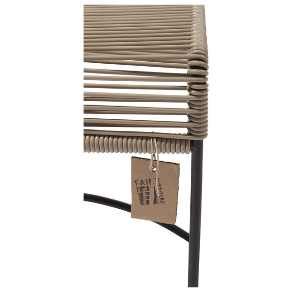 Questo sgabello è fatto a mano in PVC riciclabile. I residui durante la produzione vengono riciclati in nuovi prodotti. Il PVC è anche resistente ai raggi UV, contiene antiossidanti ed è privo di ftalati e metalli pesanti. Struttura in acciaio al carbonio, zincata, con verniciatura elettrostatica.